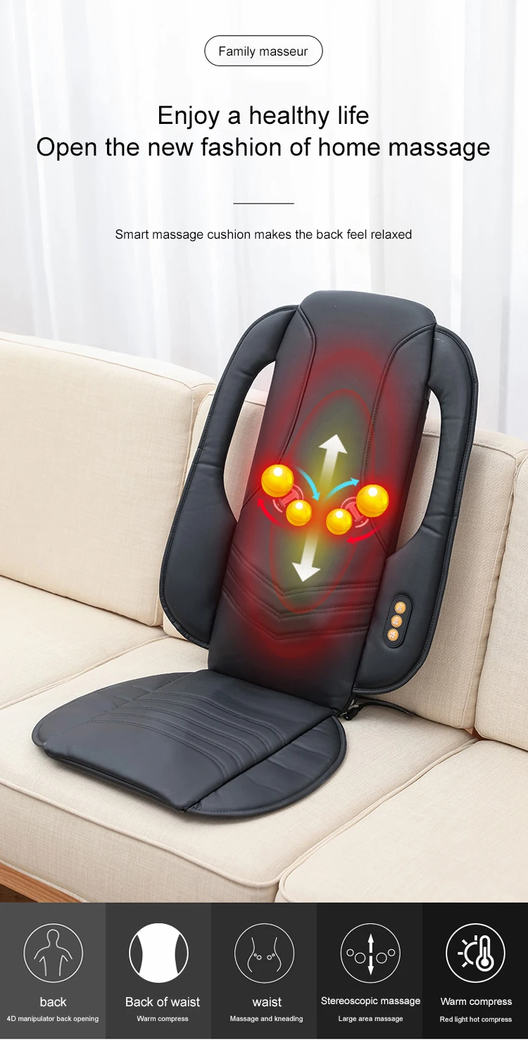 Introducing a foldable and portable intelligent back massage cushion that features a full back massage and a heating mechanism that helps to improve blood circulation for a long tiring day or even when commuting!
